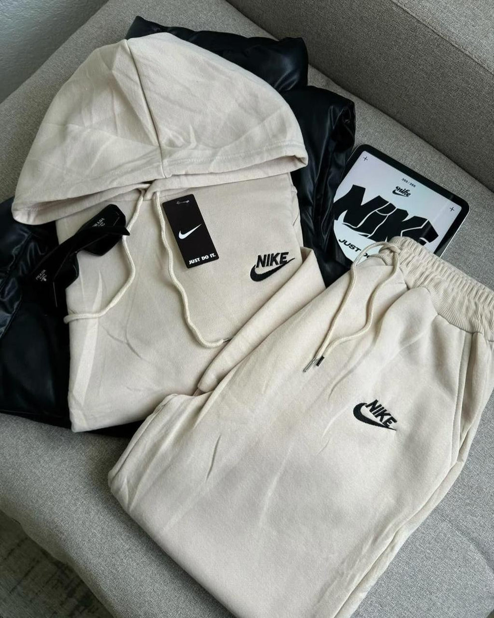 Stay comfortable and stylish with the Nike Hooded Sweatsuit. This versatile set includes a hooded sweatshirt and matching sweatpants, both made with high-quality materials for ultimate comfort. Perfect for workouts or lounging, the Nike Hooded Sweatsuit is a must-have for any wardrobe. So why wait? Grab yours today and elevate your everyday look with Nike.